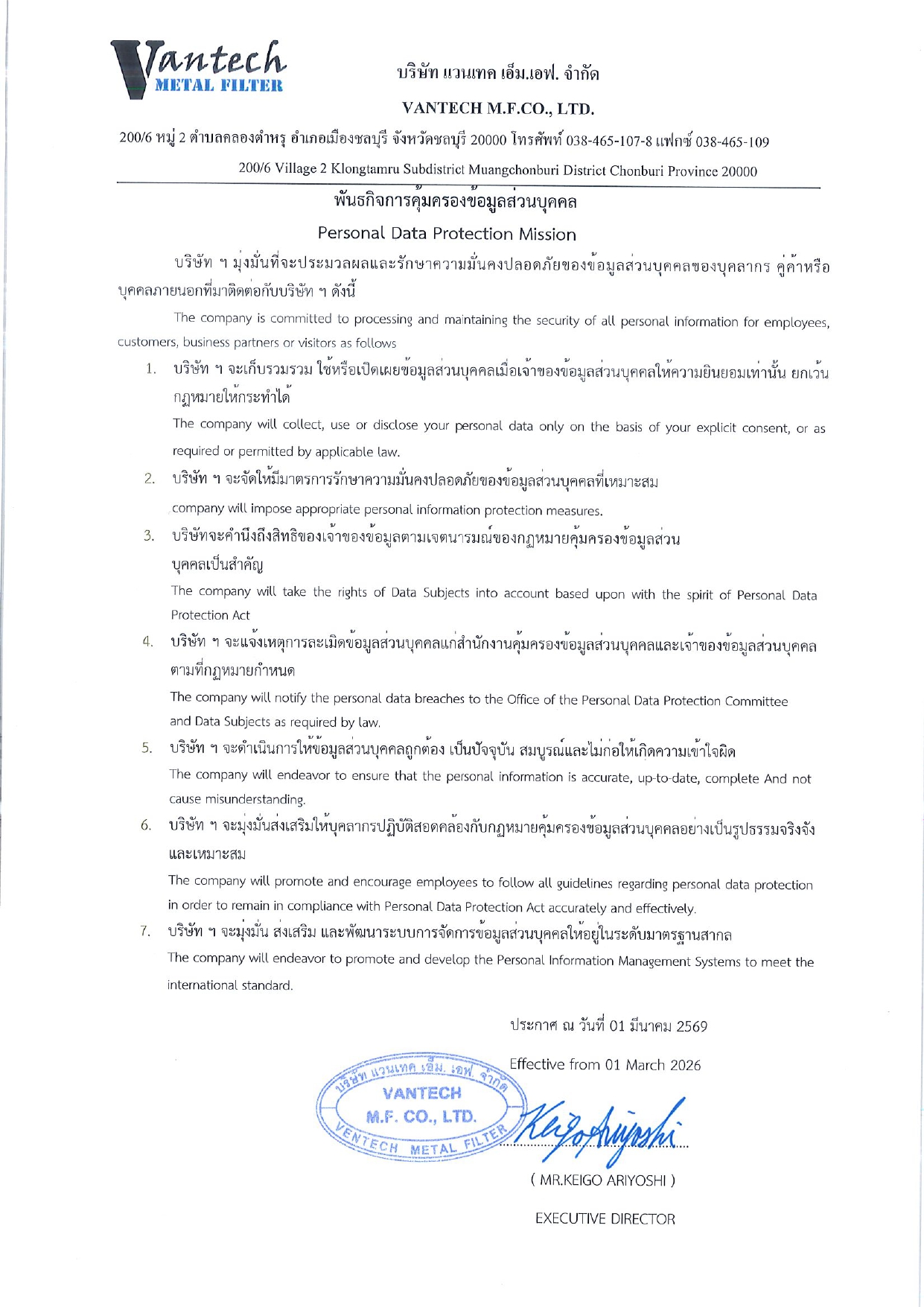 นโยบายการคุ้มครองข้อมูลส่วนบุคคล